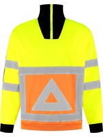 Warme en goed zichtbare zipsweater met col, ideaal voor verkeersregelaars. 100% polyester, 300 gr/m². Een ideale aanvulling op je VR kledingpakket.